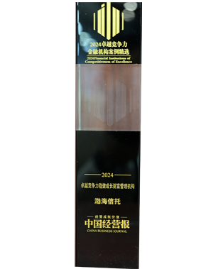 四十余年風云激蕩,四十余年歲月輝煌。渤海信托用發展的智慧、變革的決心、有恒的堅持與審慎的經營,不斷豐富著“海納百川、志存高遠、銳意革新、穩健務實”的品牌內涵。憑借在公司治理、信托業務、公益慈善、品牌建設等領域的不懈努力,公司獲得監管機構、合作機構、權威媒體、社會公眾的廣泛認可。公司連續多年被稅務機關評為“納稅信用等級A級納稅人”、連續3年入選“河北服務業企業100強”,并榮獲“誠信托·管理團隊獎”、中證金牛獎等多項權威獎項,公司影響力、知名度和美譽度不斷提升。