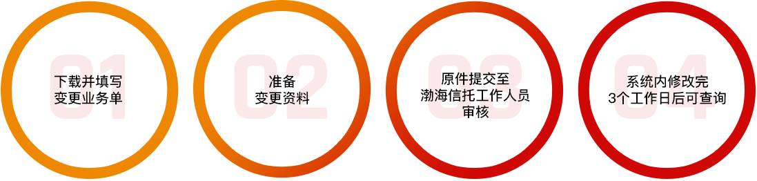 1、委托人為自然人的需填寫變更業務申請單,同時提供身份證復印件、收益賬戶復印件、合同簽署頁復印件、銀行證明(包括姓名、身份證號、新銀行卡號,加蓋銀行柜臺業務章),委托人需要在所有提供的資料上簽字并按手印;